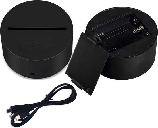 Deze 3D nachtlamp beschikt naast de mogelijkheid om door USB kabel te worden aangedreven, ook de optie om door 3 AA batterijen te worden aangedreven. Hierdoor kan de nachtlamp overal worden neergezet en is daardoor niet langer afhankelijk van kabels en stopcontacten.