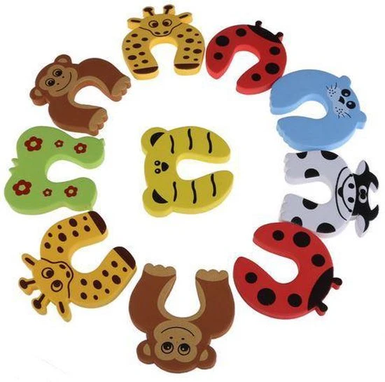 Deze vrolijke veiligheids deurstoppers zijn ideaal voor in huis met kleine kinderen. Ongelukjes gebeuren, zeker met kleine kinderen in huis. Je goed voorbereiden kan erger voorkomen. Voorkom dat deuren dicht slaan door tocht of onoplettendheid zodat vingertjes er niet tussen komen. Deze deurstoppers zijn een goede manier om dit te voorkomen en bieden bescherming aan de vingers van je baby, peuter of kleuter. Het foam materiaal zorgt er bovendien voor dat de deur niet beschadigd wordt. Daarnaast zien deze veiligheids deurstoppers er ook nog eens aantrekkelijk uit voor je kind, door de vrolijke kleuren en vormen van deze multicolour dieren foam deurstoppers.