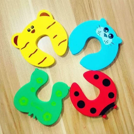 Het zijn leuke kindervingers bescherming deurstoppers voor deuren en ramen die in een set van 4 stuks verkocht worden in willekeurige kleuren. Elke soort dier heeft een andere kleur.