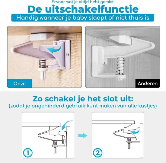 Om je kind zo veilig mogelijk de omgeving te laten ontdekken zijn deze onzichtbare kast- en ladesloten onmisbaar in en rondom uw woning. Ons product is ontwikkeld om te beschermen wat je lief is.
