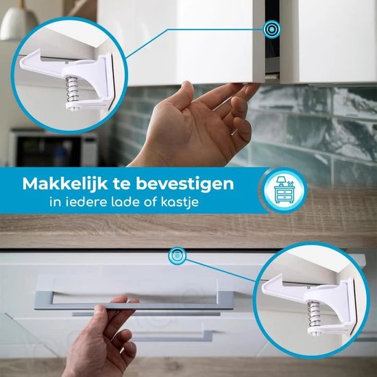 Kinderen houden van avontuur en neuzen graag rond in je lades en kastjes. Deze nieuwsgierigheid brengt ook gevaren met zich mee. Je kind kan ook in aanraking komen met de scherpe voorwerpen, medicijnen en de schoonmaakmiddelen die in je lades en kastjes opgeborgen liggen. Daarnaast kunnen de vingers van je kind bekneld raken bij het sluiten van de lade of kast.