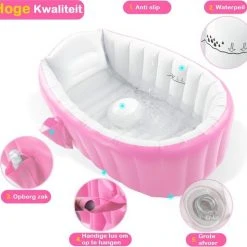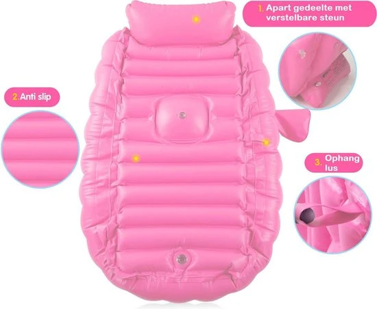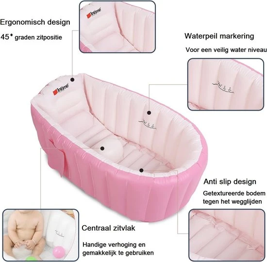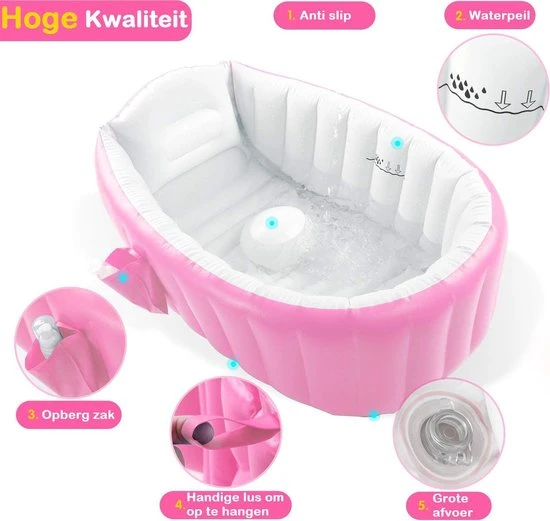 Gemakkelijk op te blazen en weer op te bergen dankzij het compacte formaat. Het bad beschikt over een handige ophanghaak aan de achterkant waardoor het badje gemakkelijk op te hangen is in de kinderkamer. Binnen een mum van tijd is het badje weer uit zicht! Daarnaast beschikt het bad over een handig opbergvakje aan de zijkant van het bad waar verzorgingsspullen in geplaatst kunnen worden, bijvoorbeeld een flesje shampoo. Zo heeft u deze altijd binnen handbereik!