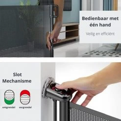 Wil jij ook meer veiligheid voor jouw baby of huisdier? Twijfel dan niet en ga voor het oprolbaar traphekje van Babybond! Je hoeft je binnenshuis nooit meer zorgen te maken om de veiligheid van jouw kindje of huisdier. Met een rek mogelijkheid van tot wel 180 cm is dit veiligheidshekje geschikt voor elk interieur binnen en buiten!