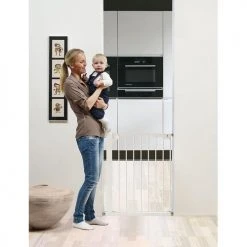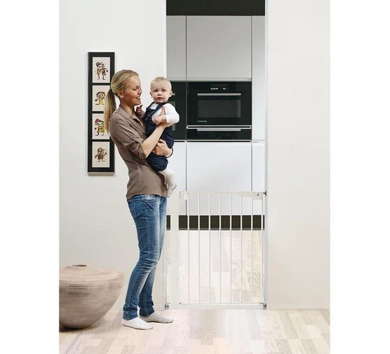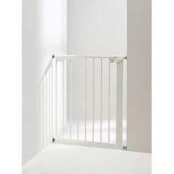 Dit is de kleinste en het eenvoudigste klemhekje van Baby Dan. Het hekje heeft een simpel maar zeer doeltreffend L-Frame. Dat bestaat uit 3 vaste punten en een deurtje dat “loskomt” als je het handvat openend. Doordat het hekje maar aan een kant een vast gedeelte zit, heb je meer ruimte voor een deurtje. Wat wel een advies is: gebruik de mee geleverde wall-cups ( kleine plastic schijfjes) die zorgen dat het hekje ook niet meer kan wegschuiven, en geven dus een betere constructie. ( je kunt ze eenvoudig bevestigen met dubbelzijdige tape.)