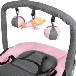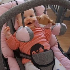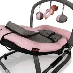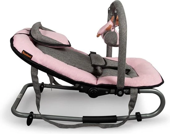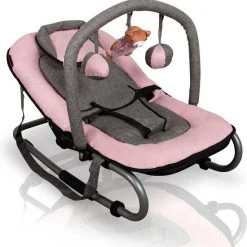 Deze Baby relax Wipstoel inclusief speelboog van Baninni heeft een zachte bekleding, zodat uw kleine lekker comfortabel kan liggen. Zowel de rugleuning als de voetensteun zijn verstelbaar. Daarnaast is deze wipstoel in een extra schommelstand te zetten. Voorzien van draag hengsels. De bekleding is afneembaar en wasbaar.
