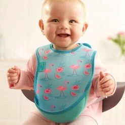 Een mooie slab in helderblauw met lieve flamingo’s, deze Bibetta slab is de beste slab die je kunt kiezen voor jouw kindje! De slab is geschikt voor kinderen van 3 maanden en ouder. Doordat het gemaakt is van neopreen, wetsuitmateriaal, is het waterproof, heerlijk zacht en supersterk. De onderkant kan zo worden omgevouwen tot een handig opvangbakje.