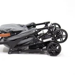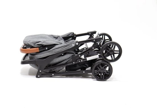 De trolley is uitgerust met een speciaal systeem van dubbele bescherming tegen het zelf invouwen van de kinderwagen. Knopje indrukken met je duim, en tegelijkertijd de greep indrukken, maakt in- en uitvouwen mogelijk met 1 hand, terwijl je mogelijk je kindje goed vasthoudt in je ander arm.