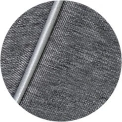 De ingenaaide glanzende strepen op het vizier en de leuning van de fiets fungeren als een subtiele reflectie.