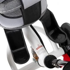 Zowel de leuning, de stoelbekleding met riemen als de geleider voor de ouder kunnen worden gedemonteerd, waardoor de fiets kan worden aangepast aan de behoeften van een opgroeiend kind.