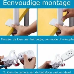 - Veilig en handig: Geen gedoe meer met de babyfoon plaatsen op een zelfgemaakte verhoging of een paar dozen. Naast dat dit onhandig en vooral onveilig is, is vaak alsnog het zicht onvoldoende.