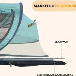- Inhoud: Reistent, zelfopblaasbaar matras (2,5 cm), draagtas, katoenen hoesje met rits