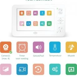 De camera heeft een temperatuursensor, zodat je in de gaten kunt houden of het niet te warm of te koud wordt in de babykamer. De babyfoon kan een alarm geven indien het te koud of te warm wordt bij je kindje. Wanneer u een micro SD-kaart (tm 128GB, excl.) gebruikt kunt u tevens de beelden opslaan en later op de monitor of uw computer opnieuw afspelen.