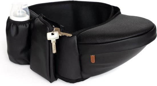 Buiten het handige zitje biedt deze heupdrager ook nog verschillende opbergers. Een vakje speciaal voor de fles. dit vakje heeft een elastieke rand waardoor hij stevig blijft zitten. Verder zit er een speciaal vakje die je kunt sluiten met een rits. Je telefoon of sleutels berg je hier veilig in op. Maar ook voor de speentjes hebben wij een uitkomst. Deze klik je met 1 hand vast aan het speciaal toegevoegde haakje. Zo wordt het multitasken easy peasy!