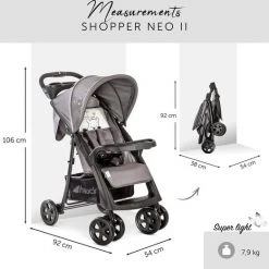 De Hauck Shopper Neo II van Hauck is een perfecte buggy voor boodschappen of om op pad te gaan met je kindje. De buggy kan snel worden ontgrendeld en compact worden opgevouwen met slechts 1 hand, waardoor je andere hand vrij is voor je kind. Het is gemakkelijk om met deze buggy met de bus of trein te reizen. De shopper NEO ll kan klein opgevouwen worden, waardoor hij in de kofferbak past. Deze lichte en wendbare buggy is snel en gemakkelijk door voetgangersgebieden te besturen dankzij de zwenkwielen en vergrendelbare voorwielen. Bewaar flessen, snacks en ditjes en datjes op de twee accessoirebladen, en bewaar je boodschappen of babyaccessoires in de grote mand.