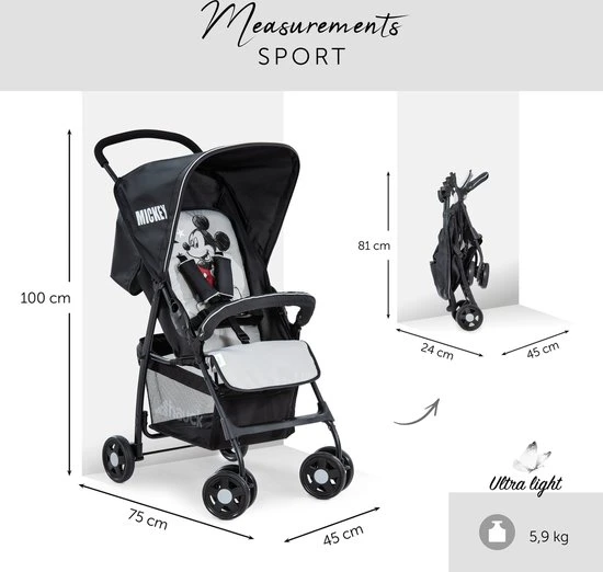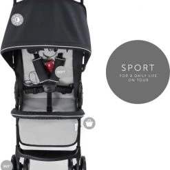 De gevoerde 5-puntsgordel en de voorste beugel garanderen de veiligheid van je kleintje, terwijl de parkeerrem tijdens je stops kan worden gebruikt om meer stabiliteit te bieden. Daarnaast is het kleine opvouwbare formaat van de Sport-Buggy zo compact dat hij in (bijna) elke kofferbak past. OP vakantie gaan met een buggy is nog nooit zo gemakkelijk geweest!