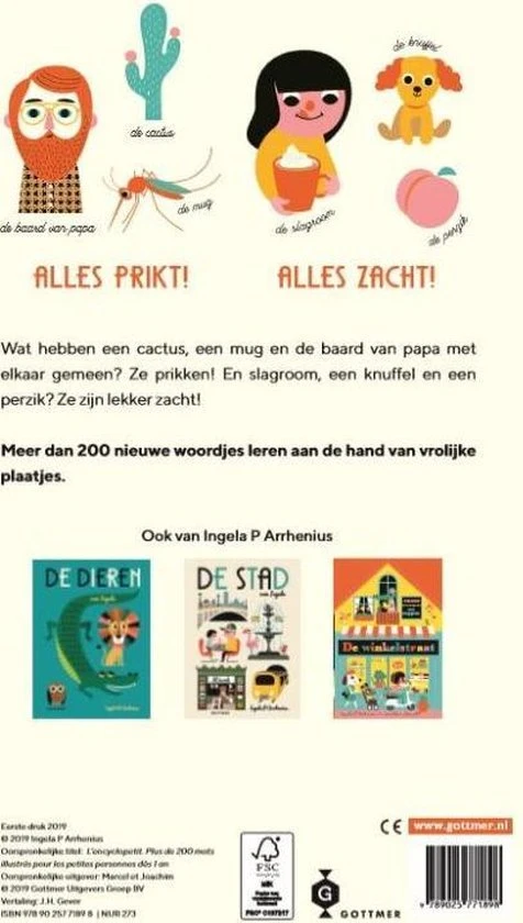 Voor dreumesen en peuters ontwierp de Zweedse kunstenares Ingela P Arrhenius een hippe eerste encyclopedie: De wereld van Ingela. Wat hebben een cactus, een egel en een baard gemeen? Precies, ze prikken! Elke dubbele pagina heeft een thema, zoals geuren en geluiden. De vrolijke eindspread heeft ?feest? als thema en is overladen met versiering, snoep, muziek en dansende mensen. Met Ingela wordt het leren van 200 nieuwe woordjes een koud kunstje!