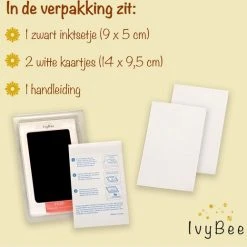 Bij levering ontvang je een stencilpapier en twee witte kaartjes voor het maken van een afdruk van zowel de hand als de voet.