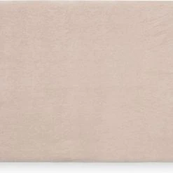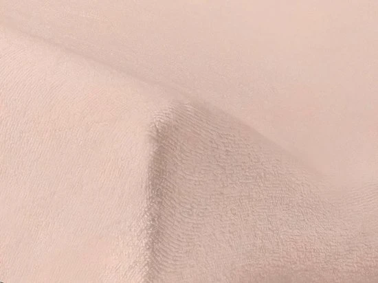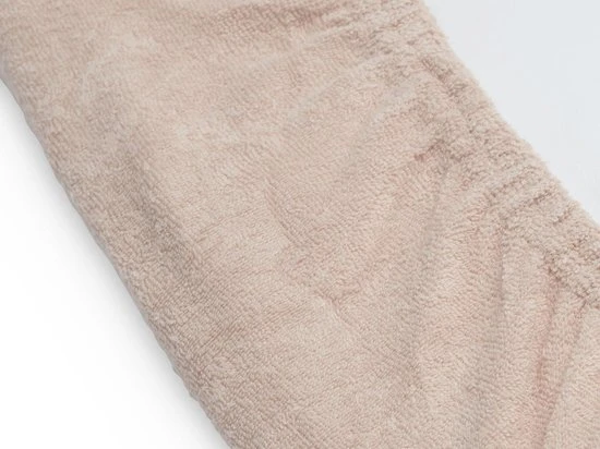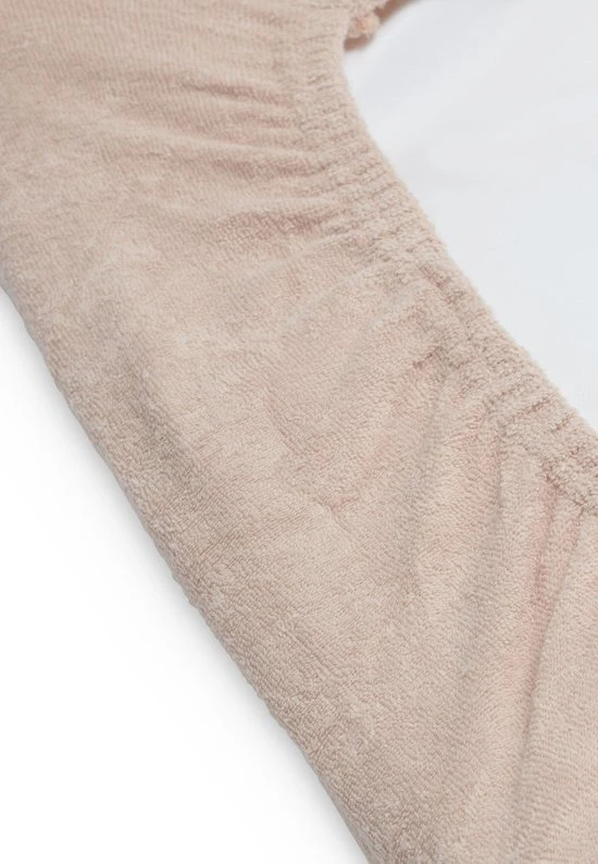 100% badstofkatoen. Aan de randen zit elastiek net als bij een hoeslaken. Zo blijft het goed zitten!