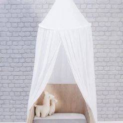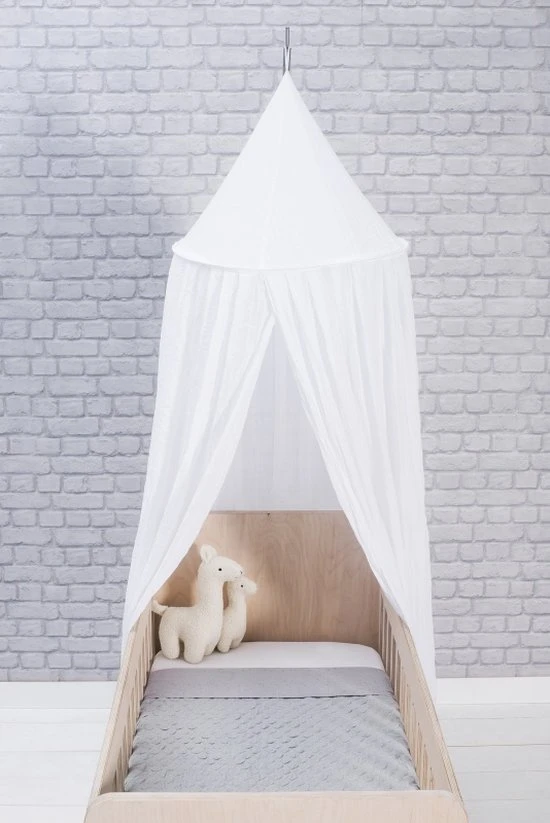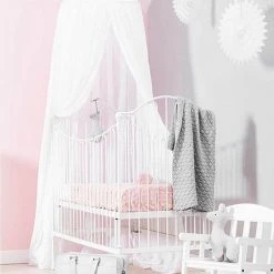 Deze prachtige vintagelook klamboe maakt van het babybed een knusse slaapplek. En je zult zien: zodra je de klamboe hebt opgehangen is de babykamer af. Het geeft sfeer en geborgenheid.