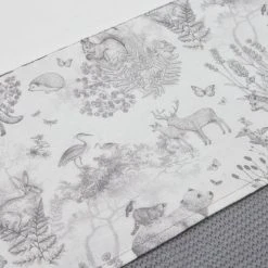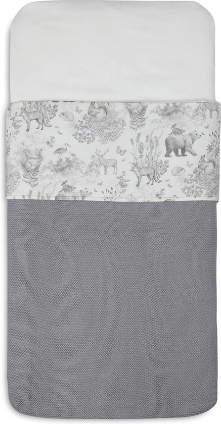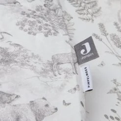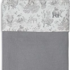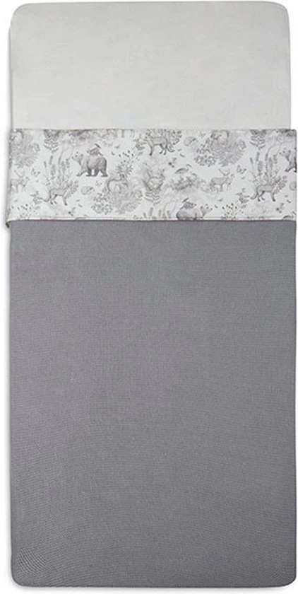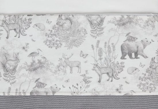 Het lakentje is wit met een geprinte boord aan de bovenkant. De boord heeft een lieve bosdierenprint van het Pimpelmees x Jollein thema. De boord sla je om de deken heen ter bescherming en het staat ook nog eens erg leuk.