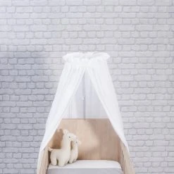 Deze vintagelook sluier is verkrijgbaar in prachtige trendy kleuren: wit, roze, groen, nougat, grijs, roest, caramel en mosterdgeel. Daarmee kun je vast en zeker de kiezen die past bij het kleurenpalet van de babykamer. Bovendien hebben we er bijpassende lakentjes, hoeslakens en dekentjes bij. Veel kleuren komen terug in de verschillende Jolleinlijnen. Dat combineert gemakkelijk. Hoe instagrammable wil jij de babykamer?