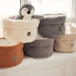 De mandjes matchen met de andere items uit de bliss knit collectie, zoals de dekens, de aankleedkussenhoes en een boxkleed. Ook een kruikenzak is in deze collectie te krijgen. Gebruik je de kruik niet meer voor je baby? Zet het dan als accessoire op een plank. Samen met wat opbergmandjes geeft dat direct een knusse en warme sfeer.Voor een extra speels effect: match het met commodemandjes in andere kleuren en uit andere collecties.