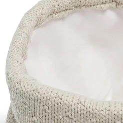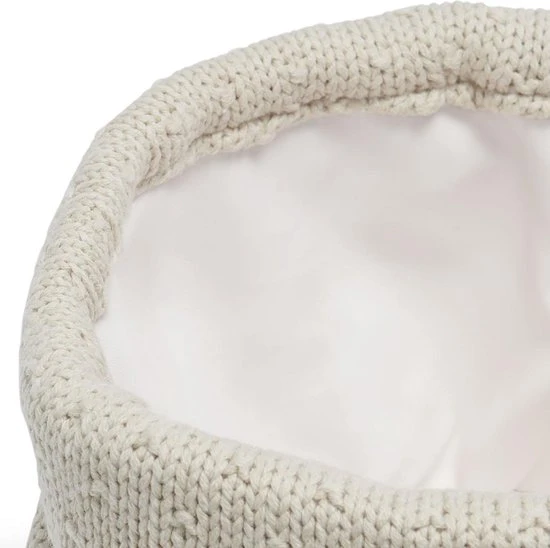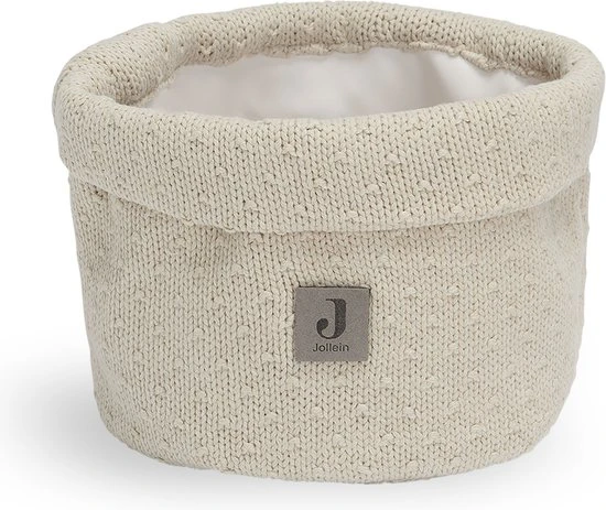 De gebreide stof in trendy kleur past in ieder interieur dus zet het gerust in de box of bij de bank met die extra luiers of monddoekjes voor het grijpen.