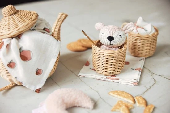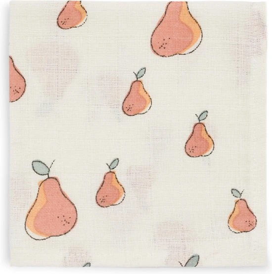Combineer het fruitprintje van deze hydrofiele monddoekjes met de andere hydrofiele items uit de Pear/Peach collectie van Jollein. Mix de fruitprints met de gebreide thema’s bliss knit en river knit. .