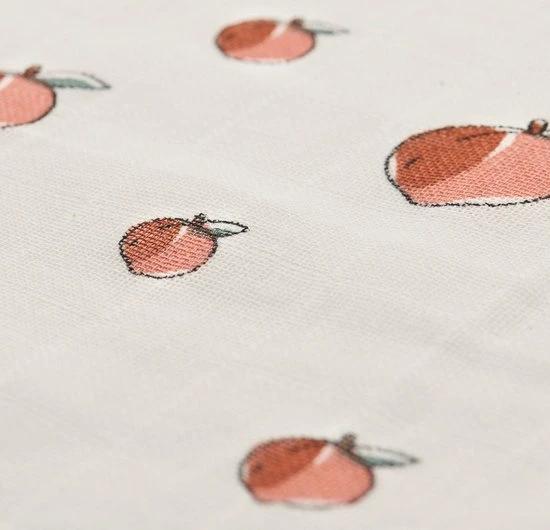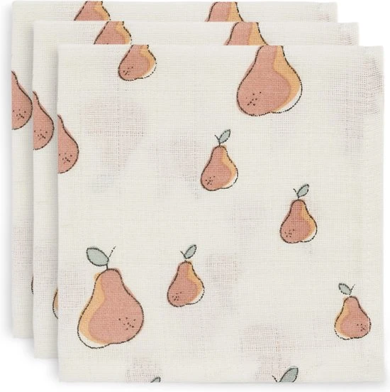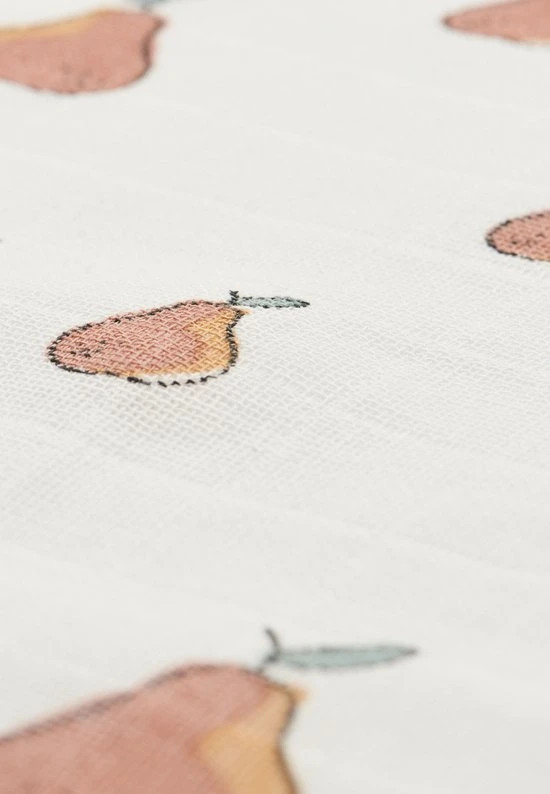 Combineer het fruitprintje van deze hydrofiele monddoekjes met de andere hydrofiele items uit de Pear/Peach collectie van Jollein. Mix de fruitprints met de gebreide thema’s bliss knit en river knit. .