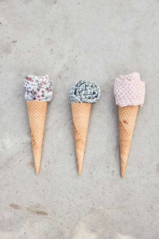 De monddoekjes worden geleverd in een 3-pack. Alle 3 de monddoekjes hebben het gezellige fruitprintje met perzikjes. De doekjes kun je lekker heet uitwassen zodat ze altijd weer hygi?nisch te gebruiken zijn. Je mag ze wel strijken maar slim om dat juist niet te doen. Ongestreken hydrofiel doeken nemen meer vocht op.