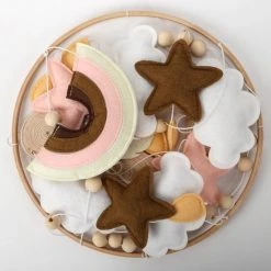 De baby kan de verschillende vormen gaan ontdekken. De vilt figuurtjes hebben neutrale kleurtjes zodat het bijna bij elk interieur babykamer past.