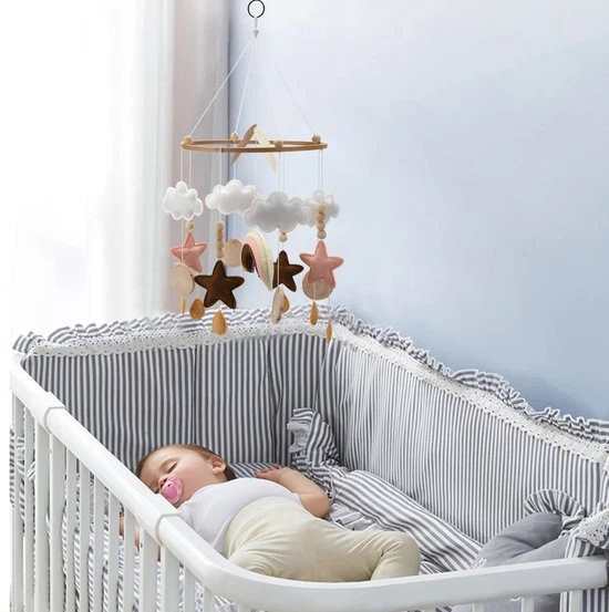 Deze unieke baby mobiel is geweldig voor urenlang vermaak voor de baby. Bovendien is het een heuze eyecatcher als deze vrolijke mobiel boven de box of wieg hangt.