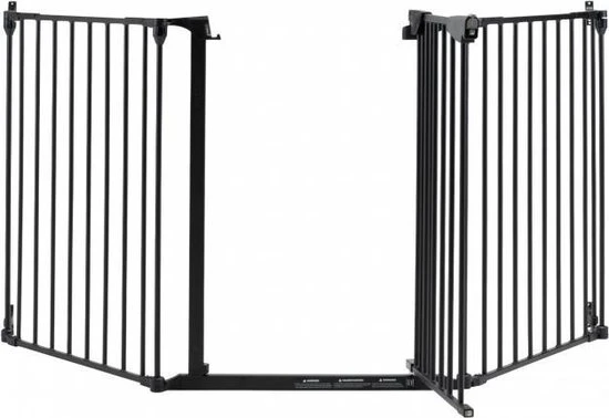 Op zoek naar een multifunctioneel traphek? Dan is de Kidsriver Connect Safety Veiligheidshek Zwart een goede optie. Dit handige traphek is eventueel ook te gebruiken als deurhek of als afscherming van bijvoorbeeld de open haard. Het systeem bestaat uit een deur en losse delen. De deur is gemakkelijk te openen met ??n hand, ideaal wanneer u uw kindje op de arm heeft. Het systeem is eenvoudig te monteren aan een muur en het kan aangevuld worden met een verlengstek van 58 cm. Deze is er los bij te bestellen. Eigenschappen, – Materiaal: metaal en kunststof, – Geschikt voor openingen tussen de 85,5 en 201 cm, – Multifunctioneel- Bestaat uit 1 deur, – Eenvoudig te monteren aan de muur, – Verlengstuk dient los besteld te worden, – Voldoet aan de Europese norm EN1930:2011