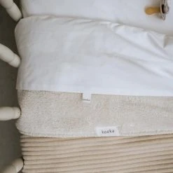 Deze wiegdeken is gemaakt van corduroy en gevoerd met warme, zachte teddy. De lijnen en het reliëf van de stoer toegepaste corduroy doet denken aan het bergachtige landschap van Vik. Maar hoe ruig de bergen in IJsland ook zijn, de stof is daarentegen super zacht en knuffelbaar.