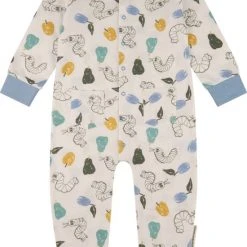 Dit leuke Rupsje Nooitgenoeg boxpakje heeft lange mouwen en pijpjes en een drukknoop voorsluiting. Een leuke en vrolijke allover print in mooie kleuren. Wie kent niet het beroemde Rupsje dat altijd honger heeft en geschreven door Eric Carle en waarvan je nu ook dit leuke boxpakje kunt krijgen. Het boxpakje is gemaakt van een zachte katoenen stof en elastische blauwe boordjes en biesjes voor een goede pasvorm.