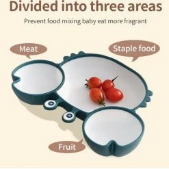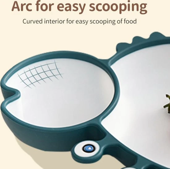 1. 3 secties: het bord is verdeeld in 3 secties voor een uitgebalanceerde maaltijd, met een diepe, afgeronde rand om gemakkelijk te scheppen.