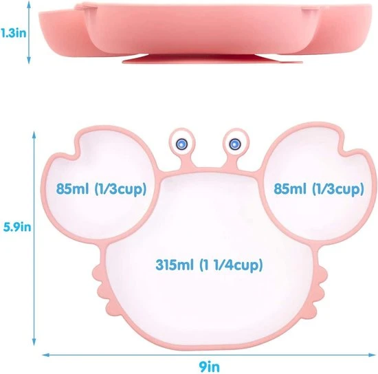 2. Krabvorm: geliefd bij kinderen van alle leeftijden, de schattige krabvorm maakt eten leuk, en de aantrekkelijke stalen kunnen de visuele ontwikkeling van uw baby stimuleren.