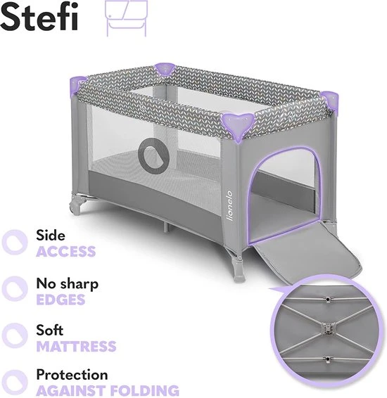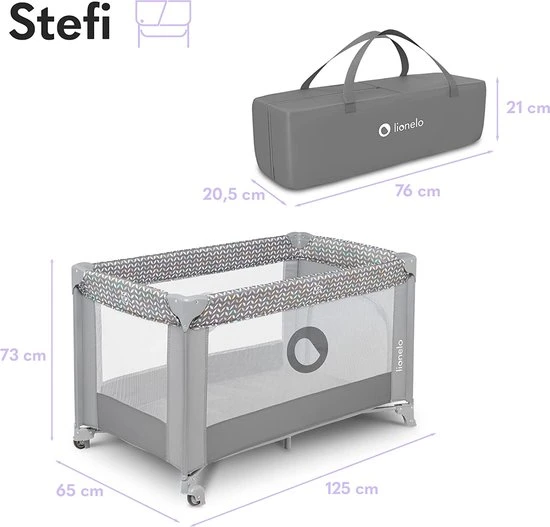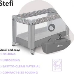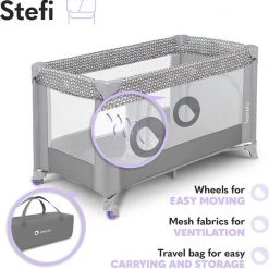 Het snelle opvouwsysteem van het bedje zorgt voor eenvoudig transport of opslag. Het vergemakkelijkt alles nog meer dankzij de transporttas die in de set is inbegrepen. Een praktisch handvat maakt het gemakkelijk te dragen, waardoor Stefi ook handig zal zijn tijdens het reizen.