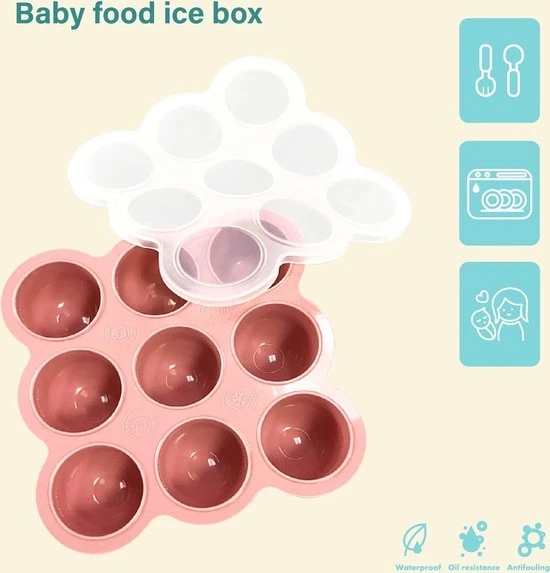 De babyvoeding bewaarbakjes heeft 9 porties zodat je zelfgemaakte voeding voor meerdere dagen bewaart. Het babyvoeding bewaarbakje is gemaakt van 100% BPA-vrij zacht siliconen materiaal, hierdoor druk je gemakkelijk je ingevroren voeding per portie uit om te ontdooien. De overgebleven porties doe je daarna weer in de vriezer om de voeding langer te bewaren. Sluit de bewaarbakjes af met geleverde deksel zodat de voeding niet in aanraking komt met bacteri?n of andere etenswaren.