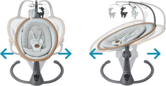 En als je weer bij je baby bent, kun je altijd oogcontact met je baby houden dankzij de mogelijkheid om de schommelstoel 360? te draaien. We weten dat je je ogen toch niet van je baby kunt afhouden. Van de woonkamer naar je kantoor aan huis en weer terug, je kunt de Cassia gemakkelijk meenemen. Hij weegt niet alleen slechts 4 kilo – minder dan de kat van het gezin – maar heeft ook een ruimtebesparend frame. En dat frame is ook nog eens zeer stijlvol! De luxe afwerking en hoogwaardige bekleding zorgen ervoor dat het design in elk interieur past. Daarbij wordt een afneembare hoes meegeleverd die in de wasmachine kan. Tot slot wordt de Cassia-schommelstoel voor baby?s geleverd met twee speeltjes, zodat je baby iets heeft om naar te kijken, twee ligstanden en een zacht en knus inlegkussen voor baby’s om jou en je baby optimaal comfort te bieden.