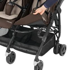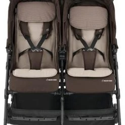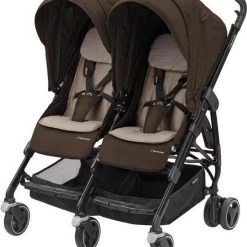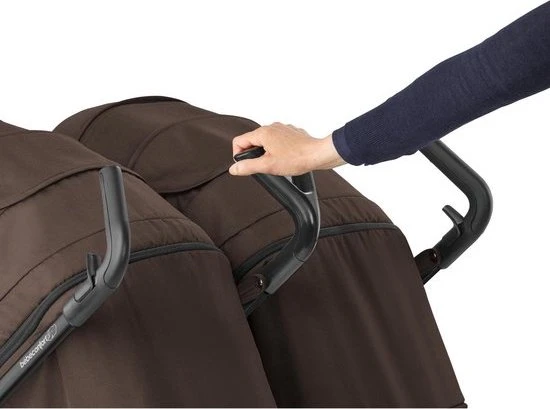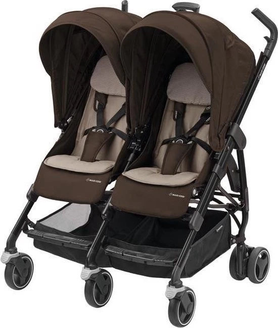Dubbele kinderwagen: kies voor veiligheid en gemakWordt er wat gegeten of gedronken in de tweeling buggy? Geen zorgen. De uitneembare bekleding kan in de wasmachine, zodat je tweeling buggy altijd fris en schoon is. De Maxi-Cosi Dana for 2 wordt standaard geleverd met regenhoes, dubbele set adapters voor de Maxi-Cosi autostoeltjes en twee XL-boodschappenmanden. De verstelbare 5-punts veiligheidsgordel zorgt dat de kinderen altijd veilig in de tweeling buggy zitten.