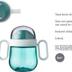 De lekvrije beker Mepal Mio mag na gebruik in de vaatwasser en is uiteraard BPA vrij. De grote handvatten zorgen ervoor dat de kinder drinkbeker makkelijk vast te houden is. De antilekbeker is geschikt voor baby’s vanaf 6 maanden. De deksels van de antilekbeker, de rietjesbeker en de oefenbeker zijn onderling uitwisselbaar.