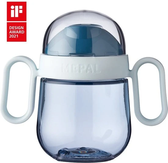 Zelf leren drinken gaat vaak gepaard met flink knoeien. Daarom is de antilekbeker Mepal Mio in deep blue echt lekvrij. Ondersteboven, op z’n zij? geen druppel eruit! De drinktuitjes zijn extra kort, dit zorgt voor een gezondere ontwikkeling van mond en gebit. De kinderbeker heeft een drinktuitje aan beide kanten, zodat je kleintje nooit misgrijpt.