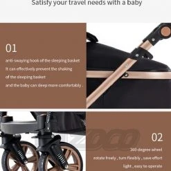 Het smalle ontwerp en de wendbaarheid van de kinderwagen maakt dat je eenvoudig door alle straten en winkelpaden beweegt. De rugleuning van het zitje is te verstellen van zit- tot volledige ligstand. De duwstang is in hoogte verstelbaar, zo vindt je altijd een fijne positie om achter de wagen te lopen. De zwenkbare voorwielen zorgen ervoor dat je ieder terrein aan kan met deze wagen! Ook kan je zelf kiezen of je kindje naar jou kijkt of naar de omgeving, want je kan de kinderwageninzet zowel naar je toe als van je af plaatsen op het frame. Wil je onderweg wat boodschappen doen? In de ruime boodschappenmand die af te sluiten is, kan jij genoeg spullen kwijt.