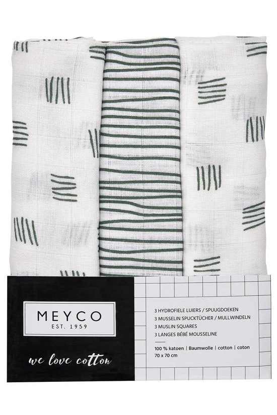 Als er iets onmisbaar is bij de verzorging van jouw baby, dreumes of zelfs peuter is het wel een hydrofiele luier. Met deze set Meyco Baby Hydrofiele Luiers 3-pack Block Stripe, met speelse print van streepjes, heb je er gelijk drie in ??n. De veelzijdige doeken, gemaakt van 100% katoen, zijn d? uitkomst als handdoek na het badje. Het hydrofiele katoen droogt snel en neemt vocht goed op, waardoor je je kleintje zelfs bij de kleinste plooitjes goed droog kan deppen. De stof voelt erg zacht aan en dat is precies wat tere babyhuidjes nodig hebben.