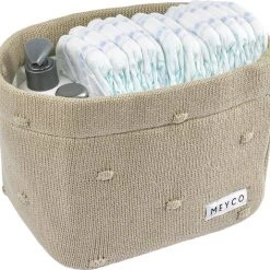 Dit gebreide Meyco Baby Commodemandje Mini Knots ziet er niet alleen leuk uit, het is ook nog eens erg praktisch in de babykamer. Zet hem dichtbij of ?p de commode en berg er alle verzorgingsproducten (of speelgoed) in op. Zo blijft alles netjes bij elkaar en heb je het zo bij de hand. Handig! De opliggende, gebreide mini knopen geven het mandje n?t een wat speelser effect.Tip: Is de Mini Knots collectie net niet jouw smaak? Kijk dan eens naar onze reguliere Knots collectie!