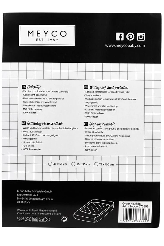 Het bedzeiltje is verkrijgbaar in de maten: 40×50 cm (wieg), 50×90 cm (ledikant) en 75×100 cm, (junior).