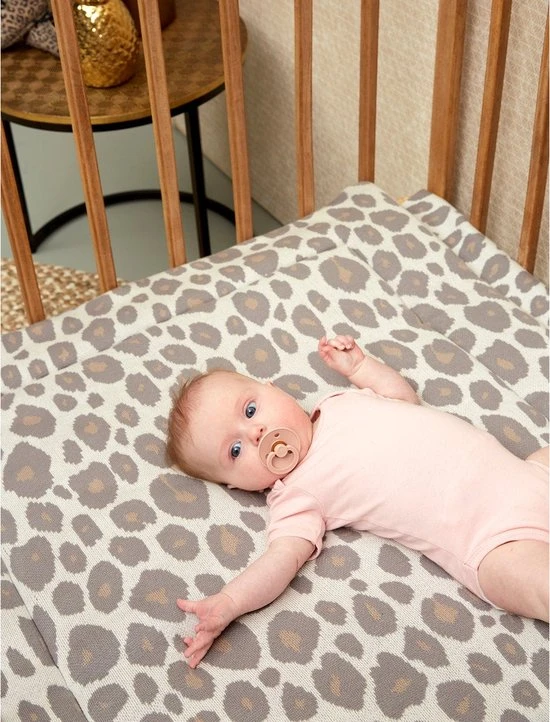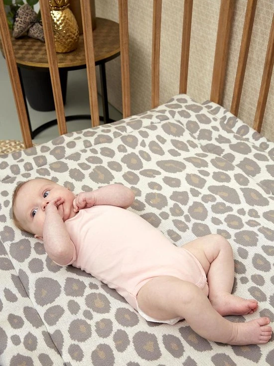 Het Meyco Baby Boxkleed Panter is een eyecatcher. Zelfs als je kindje er niet in ligt, staat het nog mooi in je woonkamer! De bovenzijde is voorzien van een fashion panterprint en is gemaakt van 100% katoen, waardoor je kindje zacht en comfortabel ligt. De onderkant is van zachte velvet. Op dit boxkleed kan je kindje veilig slapen of spelen in de woonkamer. Gebruik het multifunctionele kleed op de vloer of buiten in de tuin als speelkleed.
