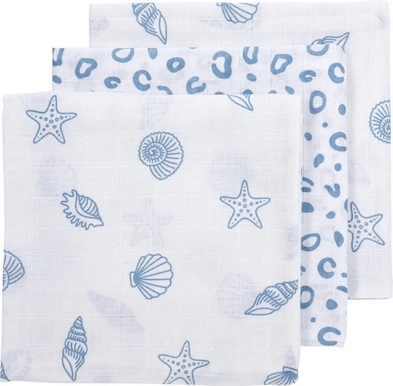 Als er iets onmisbaar is bij de verzorging van jouw baby, dreumes of zelfs peuter is het wel een hydrofiele luier. Met deze set Meyco Baby Hydrofiele Luiers 3-pack Shells, met schattige print van verschillende schelpjes, heb je er gelijk drie in één. De veelzijdige doeken, gemaakt van 100% katoen, zijn dé uitkomst als handdoek na het badje. Het hydrofiele katoen droogt snel en neemt vocht goed op, waardoor je je kleintje zelfs bij de kleinste plooitjes goed droog kan deppen. De stof voelt erg zacht aan en dat is precies wat tere babyhuidjes nodig hebben.