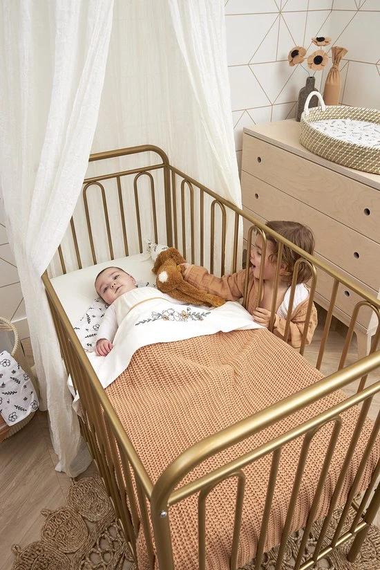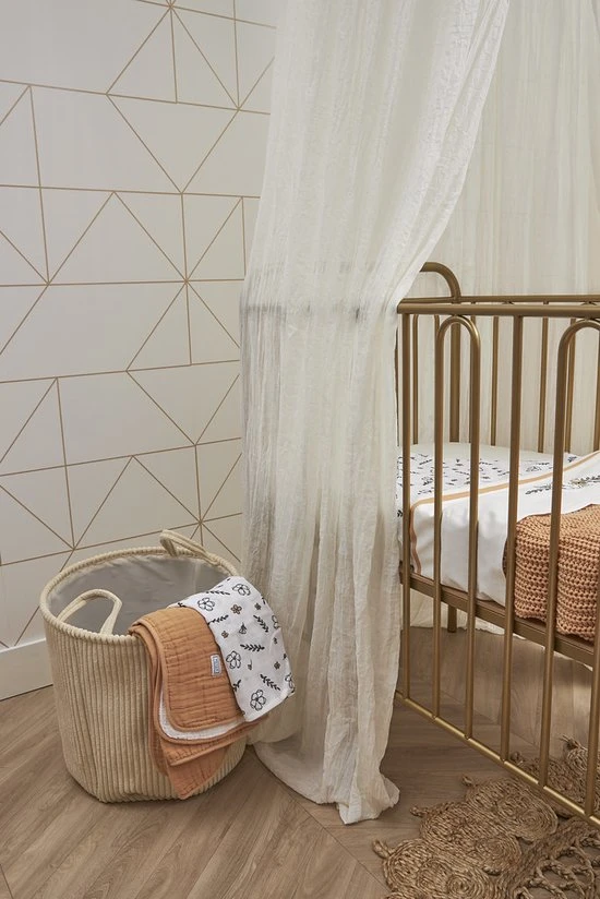 De klamboe is verkrijgbaar in héél veel verschillende, trendy kleuren. Zo vind je altijd precies die ene juiste match met de babykamer en past de klamboe ook perfect bij de rest van de complete Meyco Baby collectie.